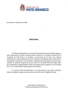 Confirmado primeiro óbito por Coronavírus em Pato Branco
