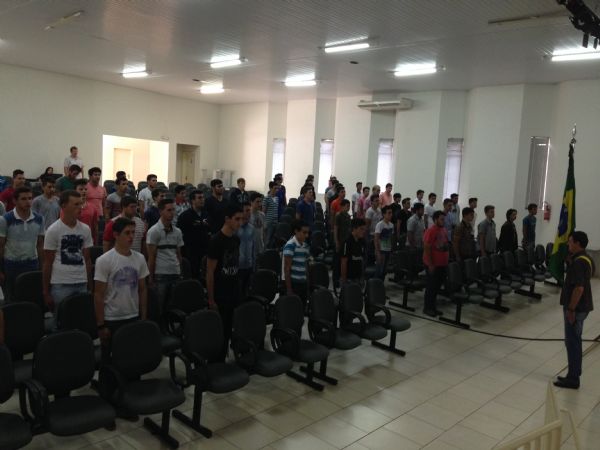 O ato contou com procedimentos simbólicos, como hino nacional, e continência