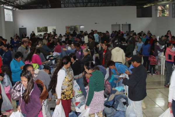 Centenas de famílias puderam escolher vários itens para se agasalhar