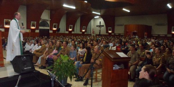 O Padre Valdecir Bressani celebrou a missa organizada pela PM e BM