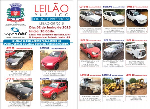 Serão leiloados veículos doados pela Receita Federal e também da frota do Município