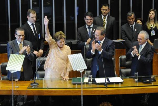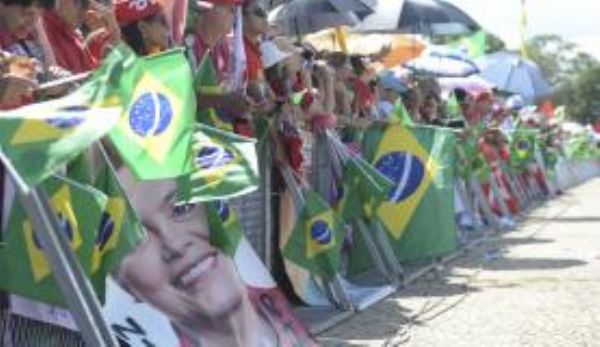 Quando a presidenta passou acenando em carro aberto, as pessoas balançaram as bandeirinhas do Brasil