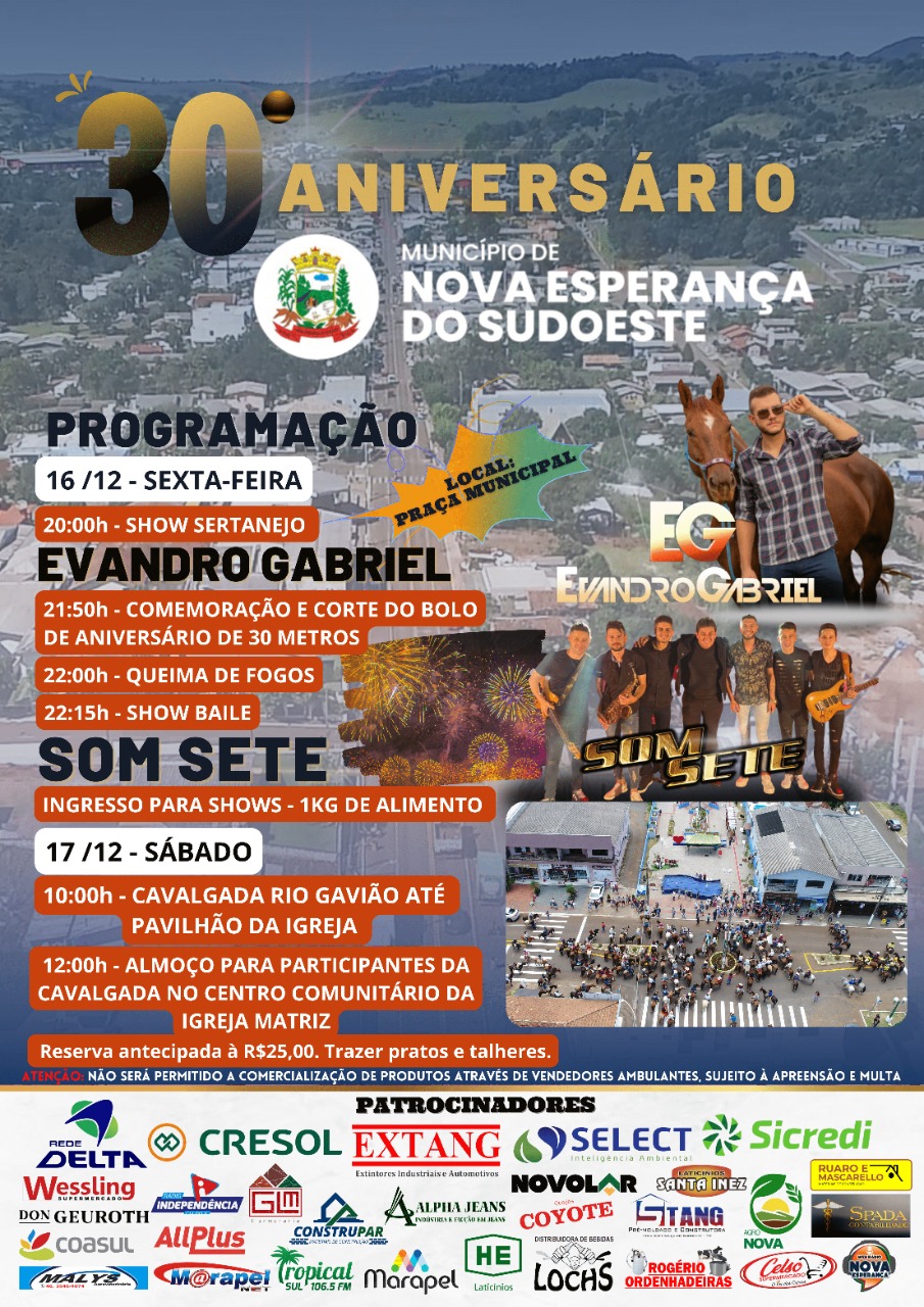 Nova Esperança do Sudoeste prepara eventos para comemorar o 30º aniversário