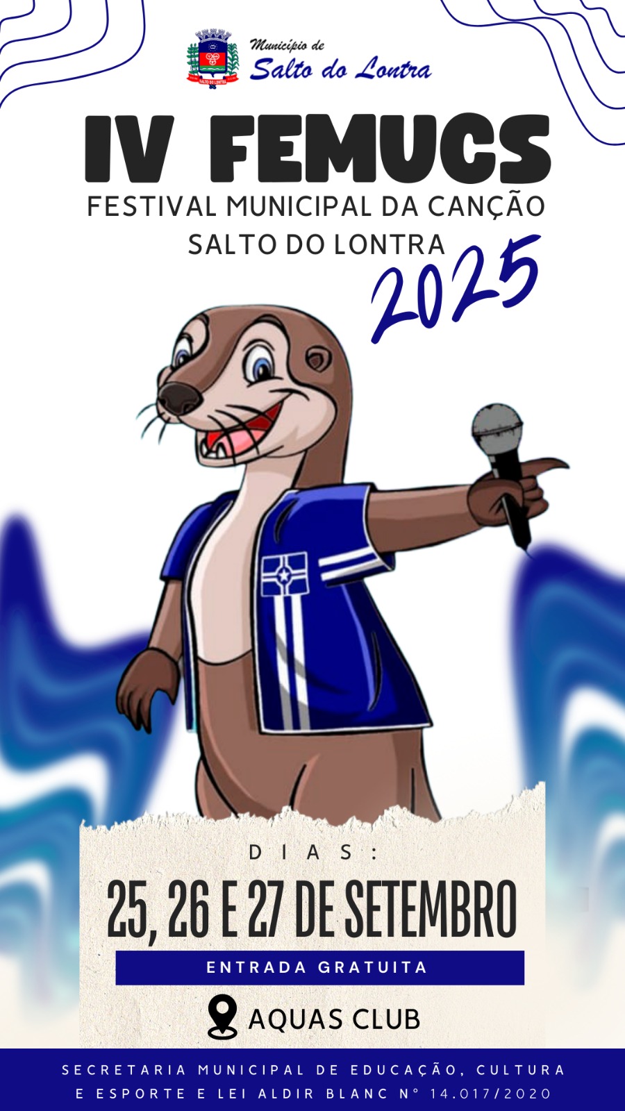Seguem abertas inscrições para o IV FEMUCS - Festival Municipal da Canção de Salto do Lontra