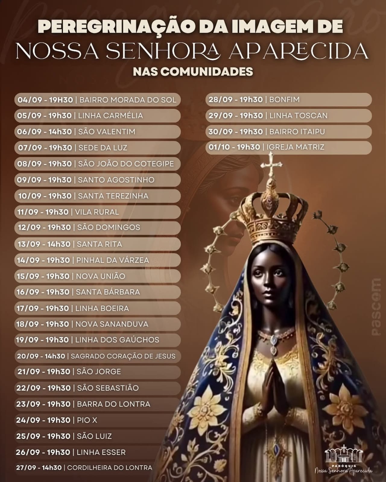 Imagem de Nossa Senhora Aparecida inicia a peregrinação pelas comunidades de Salto do Lontra