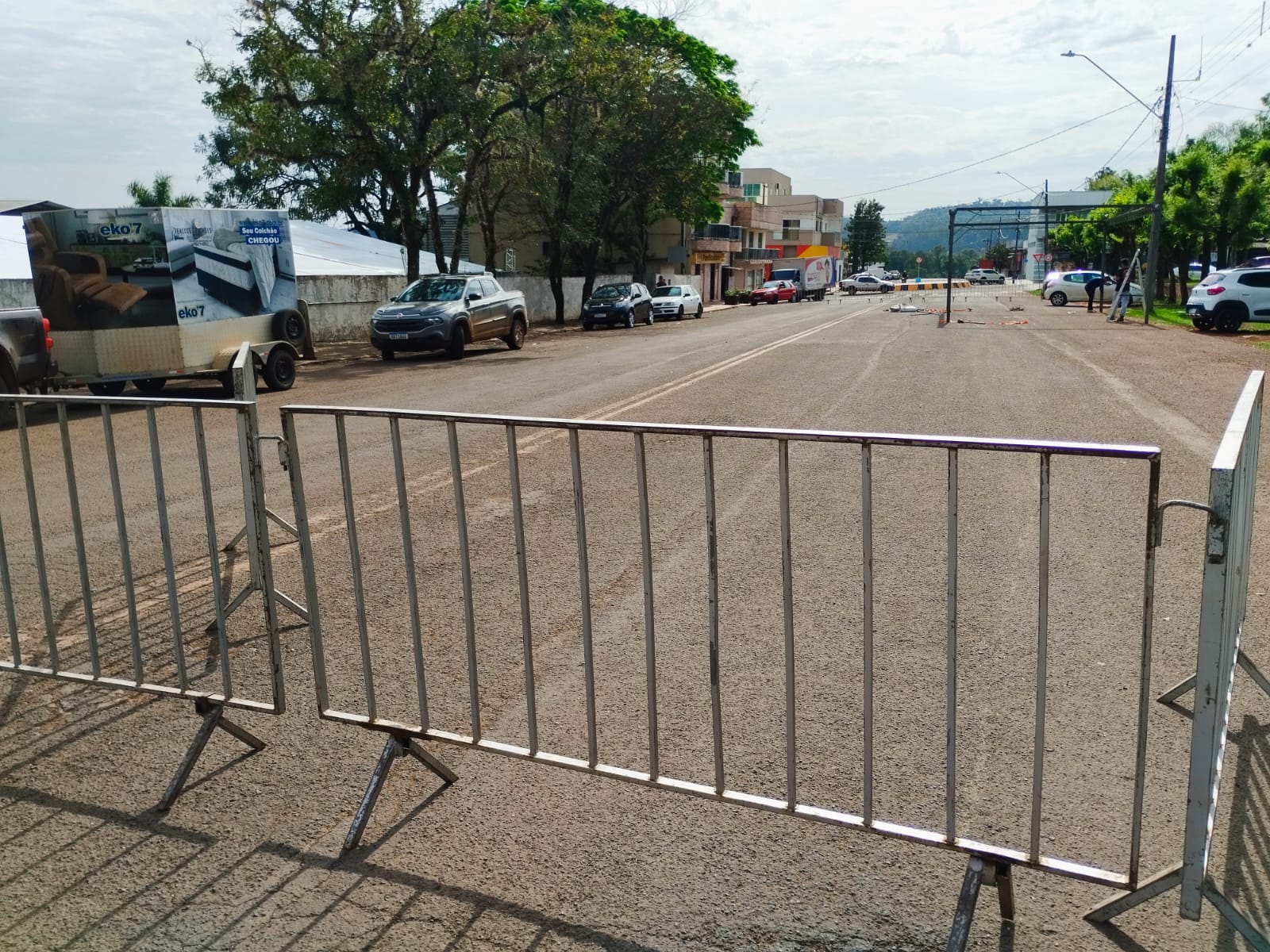 Rua Irmã Maria Bernarda, em frente ao Centro Comunitário da Igreja Matriz de Salto do Lontra, está interditada para a 4ª Feira do Comércio
