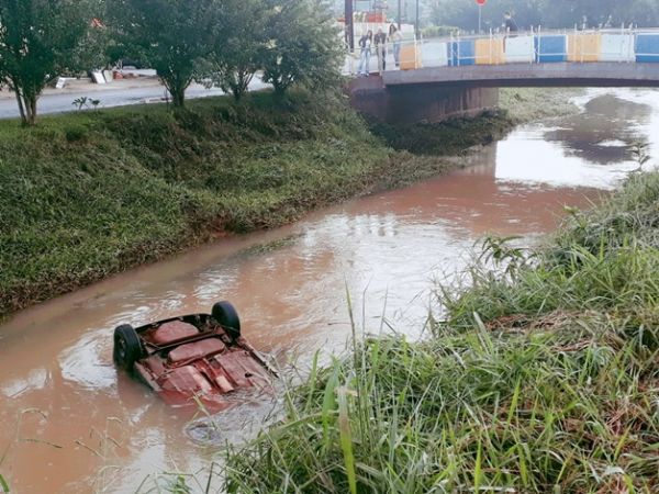 Carro com duas pessoas cai no Rio Marrecas na Cango