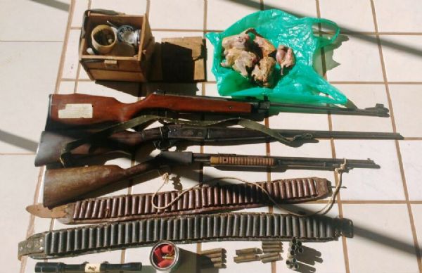 Ao todo, 185 munições de diversos calibres e diversos objetos ilegais foram apreendidos na ocorrência.