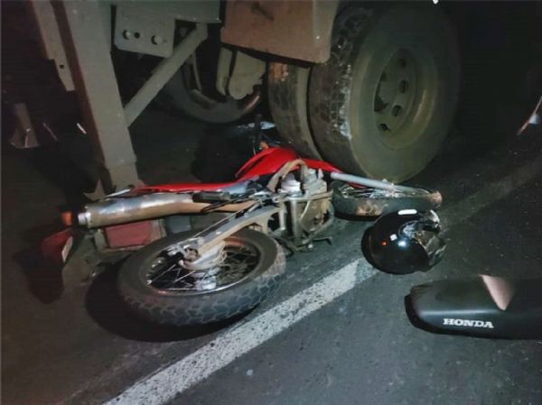 Moto conduzida pela vítima bateu no rodado traseiro de uma carreta.