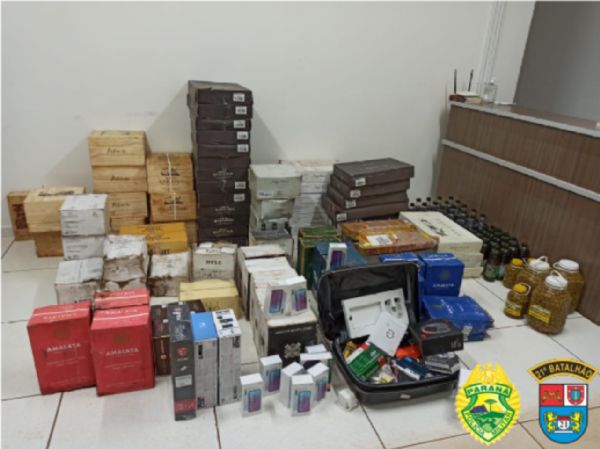 3 veículos viajavam de Ampére para Curitiba, local onde entregariam a carga que era transportada de forma ilegal, sem desembaraço aduaneiro.