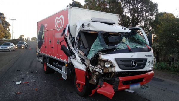 Colisão entre caminhão e carreta na PR-182 em Realeza