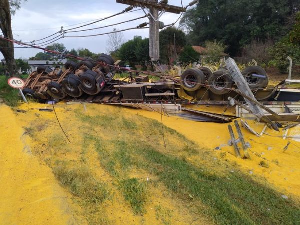 Caminhão tomba na PR-566 entre Francisco Beltrão e Itapejara