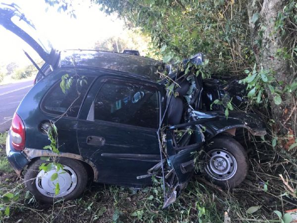 Houve saída de pista, seguida de choque com árvore