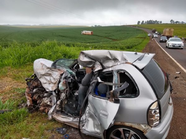 Acidente entre carro e caminhão deixa uma pessoa morta na PR-182