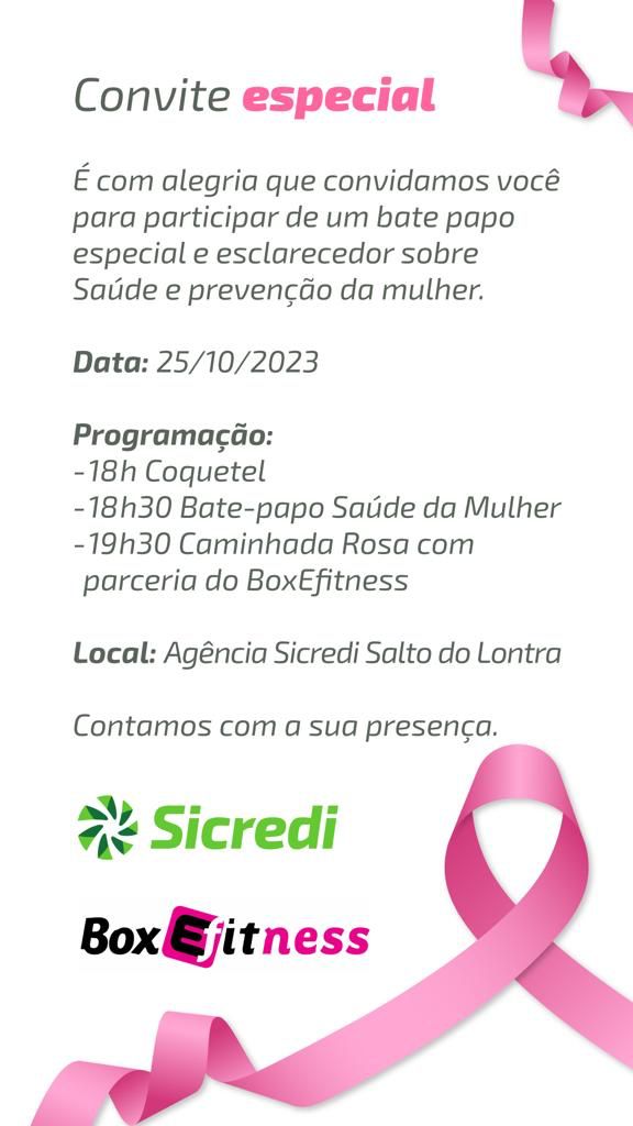 Ações referentes ao Outubro Rosa serão realizadas nesta quarta-feira, 25, em Salto do Lontra