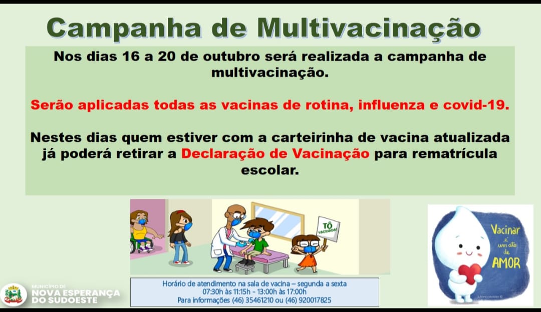 Realizado dia D da Campanha de Multivacinação em Nova Esperança do Sudoeste
