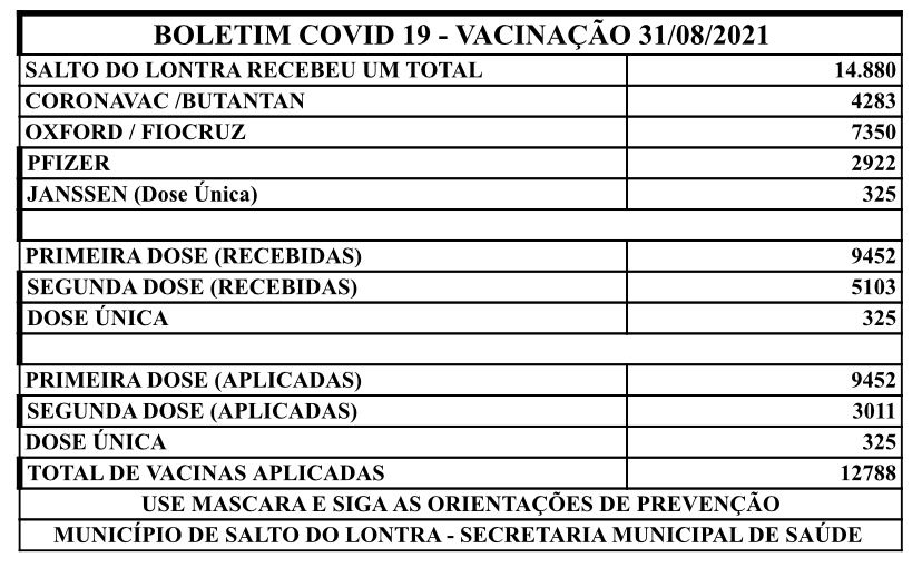 Até o momento, 7.017.431 pessoas foram imunizadas com a primeira dose e 2.985.049 com as duas ou dose única, completando a cobertura imunológica.