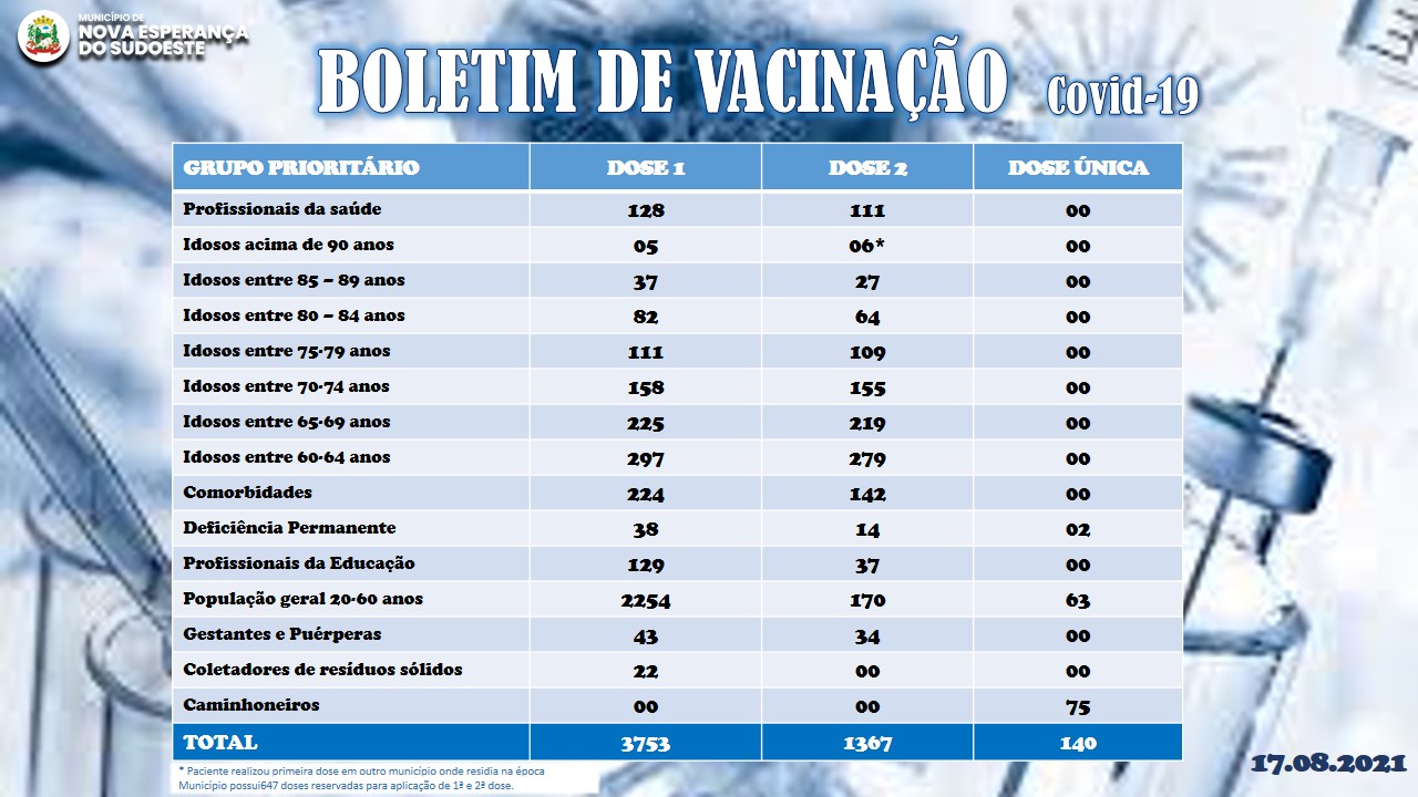 Nesta sexta e sábado, dias 13 e 14, haverá vacinação.