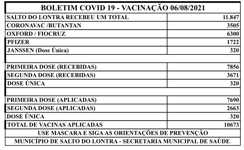 Com um total de 6.655.689 aplicações entre D1 (6.347.549) e DN (308.140), o Paraná já alcançou 76,3% da população vacinável, parcela formada por pessoas com mais de 18 anos (8.720.953 paranaenses).