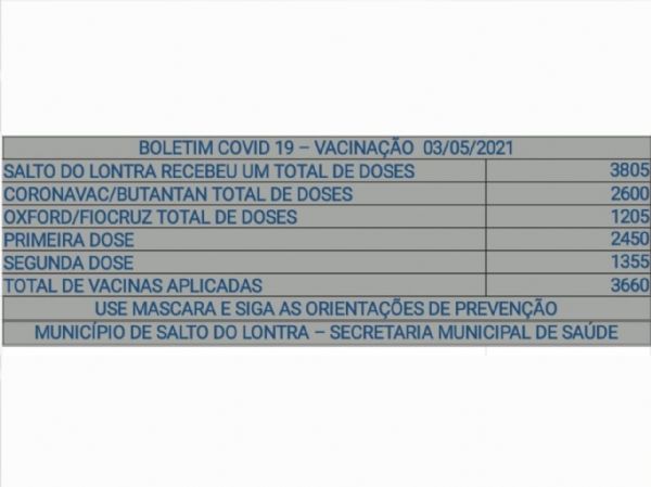 O Estado já aplicou 2.766.012 doses, sendo que 1.764.349 pessoas já receberam a primeira.