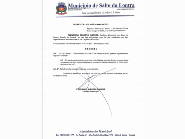 O decreto 7.230/21 foi assinado pelo governador Carlos Massa Ratinho Junior nesta quarta-feira, 31.