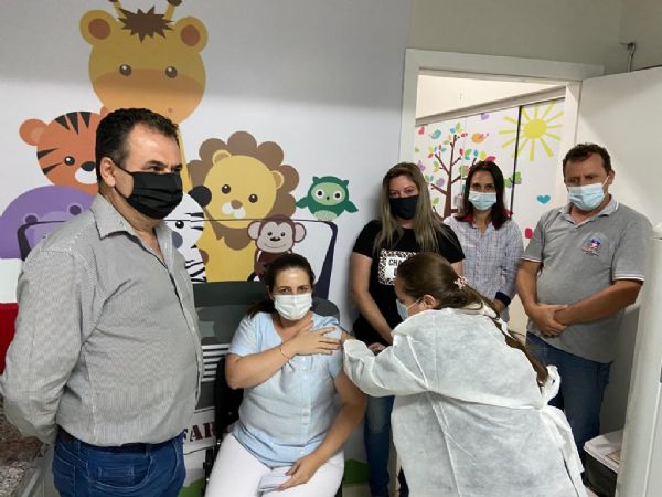 A enfermeira Luziane Spada foi a primeira pessoa do município a ser imunizada.