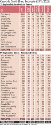 No Sudoeste, 1.666 pessoas estão com Covid-19
