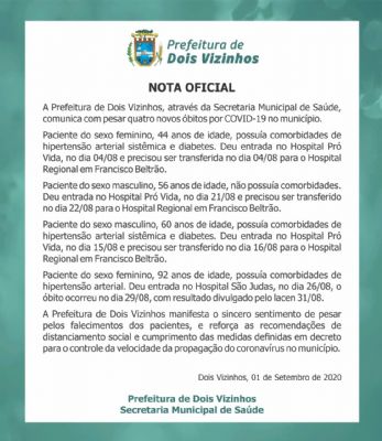Dois Vizinhos confirma mais quatro mortes por Covid-19