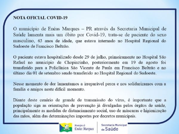 Enéas Marques confirma quarta morte pela Covid-19.
