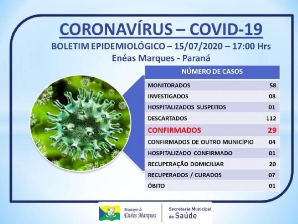 Secretaria de saúde de Enéas Marques divulga boletim da Covid-19