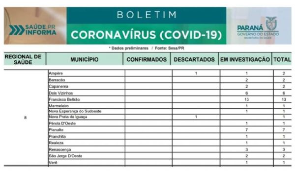 Nova Esperança do Sudoeste: exame descarta caso suspeito de Covid-19