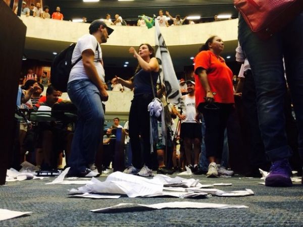 Servidores em greve invadiram o Plenário da Casa nesta terça-feira (10).