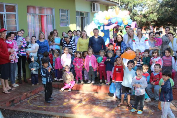 A alegria estampada nos rostos das crianças satisfaziam as autoridades e professores presentes